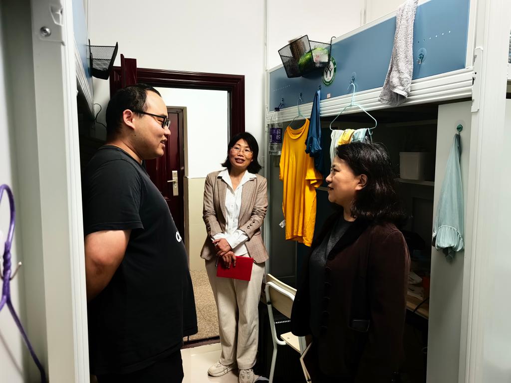 为深入了解2025级研究生入学后的学习及生活情况,加强对新生的关怀与引导,9月29日上午,太阳集团tyc4633党委书记宋力、副院长潘晓芳及科研与研究生工作秘书崔向超一行前往研究生宿舍进行实地走访。