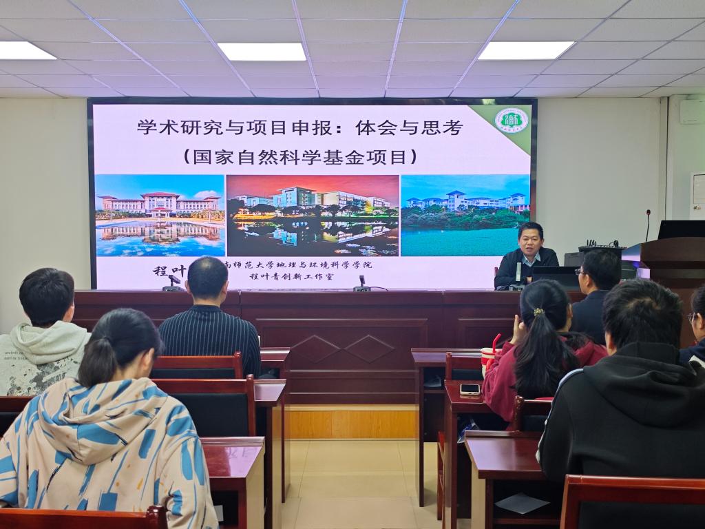 11月14日下午,海南师范大学程叶青教授于理科楼南楼410会议室为我校师生作了题为“学术研究与项目申报:体会与思考”的学术讲座。程教授从基金评审关注的重点、基金申报的注意事项等方面,重点阐述了青年学者应如何凝练高质量选题和提升申报书质量。针对当前普遍存在的“创新性不足”问题,建议青年学者从“薄弱点”“矛盾点”“交叉点”“来源点”四个维度凝练高质量选题,并系统阐述了申报书在逻辑架构、文献综述、研究基础等方面的撰写要点。本次讲座内容详实、方法务实,为广大师生的科研规划与项目申报提供了清晰、可操作的指导,对营造学院务实创新的学术氛围、推动高水平科研平台建设具有重要意义。