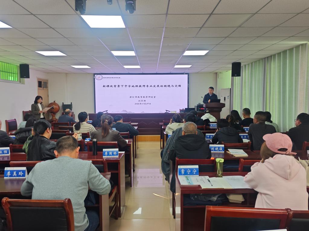 11月30日下午,信阳市基础教育教学教研室地理教研员孟勇老师于理科楼南楼410会议室作了题为“中学地理优质课教学设计策略与案例分析”的专题讲座。孟老师从中考趋势与职称评审改革切入,系统阐述了优质课应如何从理念、操作与策略层面综合设计,并以《自然环境对地方文化的影响》为例,从课标解读、目标设定到教学反思等九个维度解析了教学设计的关键要素。他强调,优质地理教学须以核心素养为导向,融入真实情境、贯通实践与创新,为参会师生提供了系统的设计框架与行动方向。