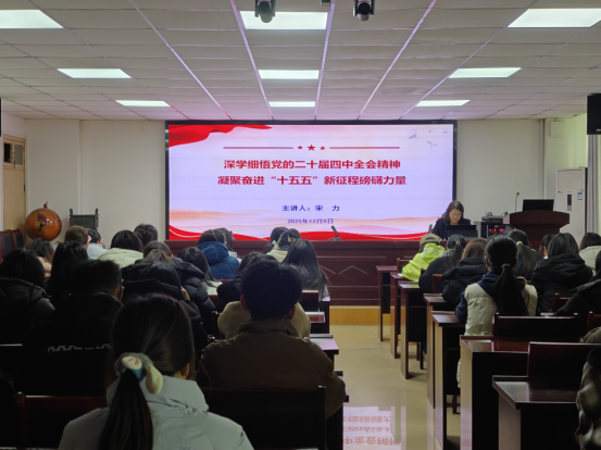 宋力围绕“党的四中全会内涵”、“总书记为何如此重视‘十五五’规划编制”、“‘十四五’我们交出了怎样的答卷”、“二十届四中全会擘画了未来蓝图”四个篇章展开讲解。她首先阐释了四中全会在党内政治生活中的重要地位,深入剖析了“十五五”规划编制的重大意义、关键时期的阶段性特征、国际形势的前瞻性把握、新质生产力的战略地位以及以人民为中心的发展思想。用翔实的数据和生动的案例,展示了我国各方面取得的辉煌成就,强调这是全党全国各族人民团结奋斗的结果,也是新时代青年接续奋斗的底气所在。